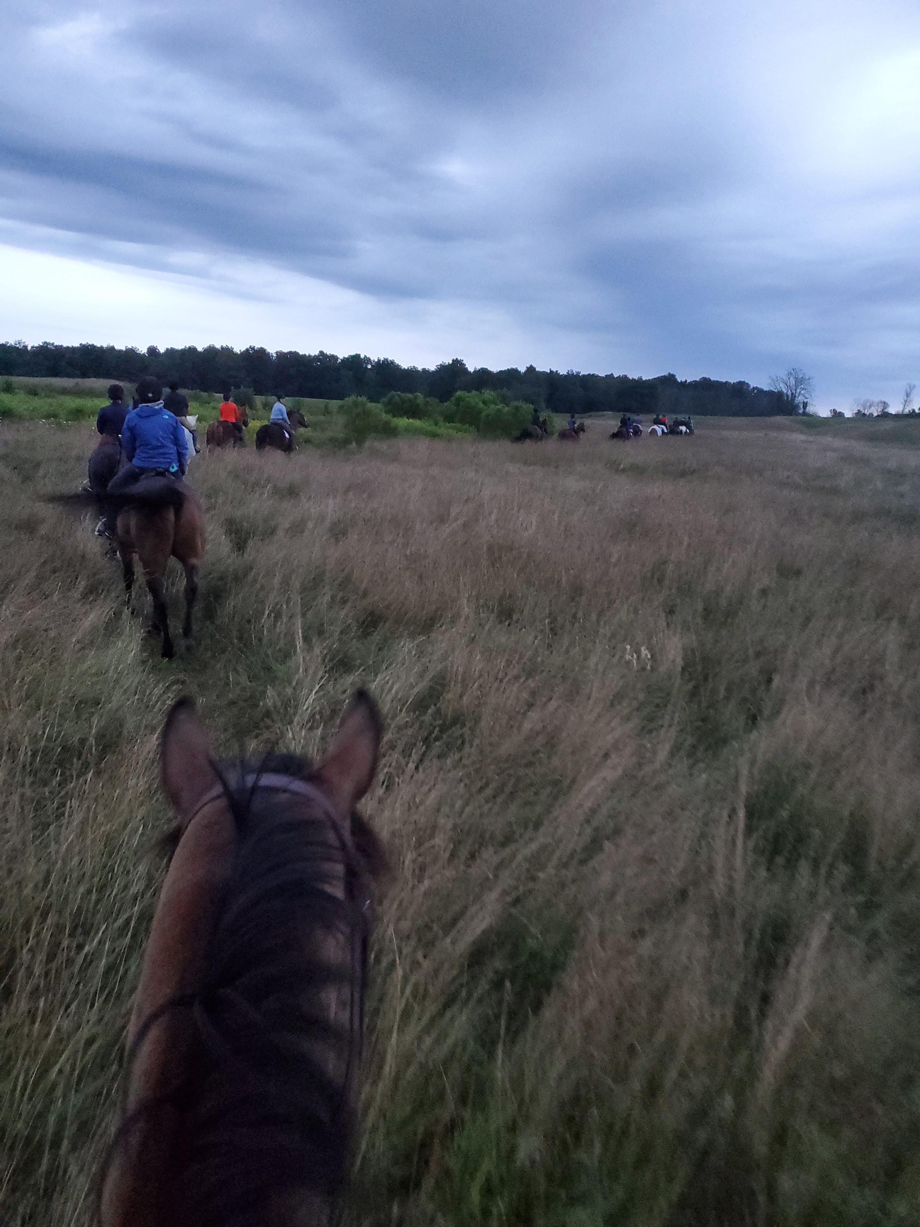 While I am walk, trot, cantering and galloping in the field, I am trying not to jump my young and inexperienced horses this season. I know that the front of first-flight is not the place for me. I hunt with my sponsor and she will often decide (on any given day) where we should place ourselves in the field.