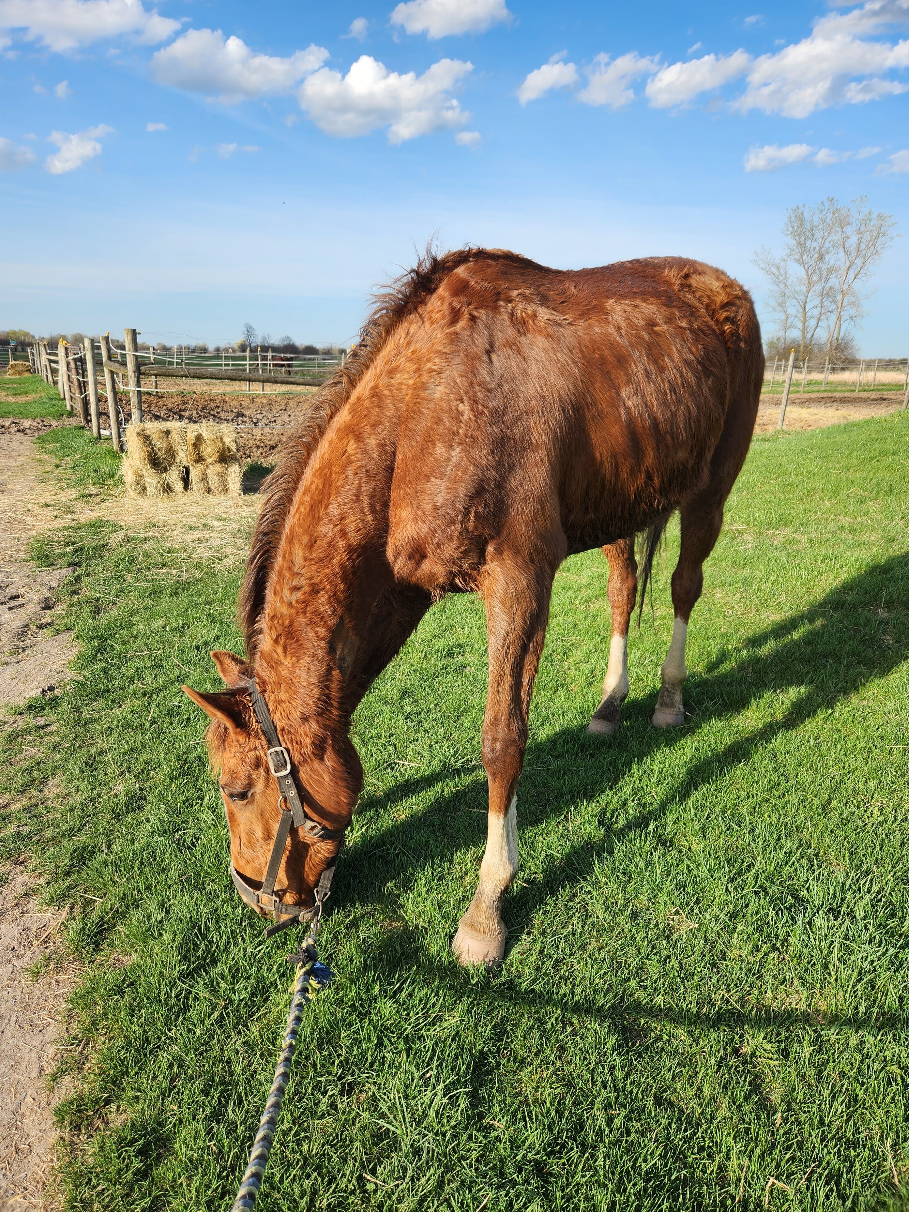 My vet was pleased to see that Smirk’s heel bulb injury from the winter was looking good and has almost completely healed. She is very weedy, going through a growth spurt and losing her winter fuzzies right now. After taking our best (awkward) Coggins glamour shots, we moved on to our dentals.
