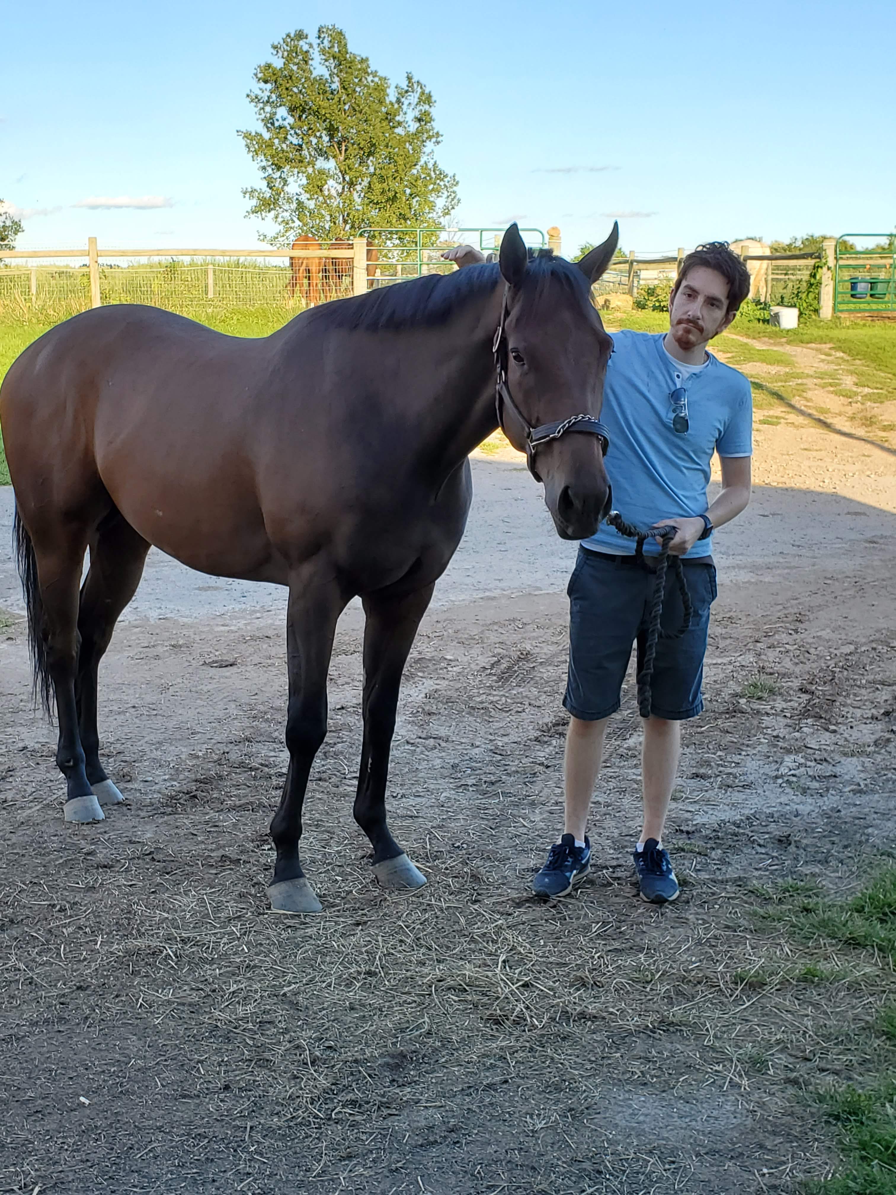 Kona is a super sweet gelding who I purchased from a Finger Lakes Racetrack trainer in September of 2020. He was unraced, unregistered and untattoo-ed. He had very minimal track training and was basically too big to be fast.