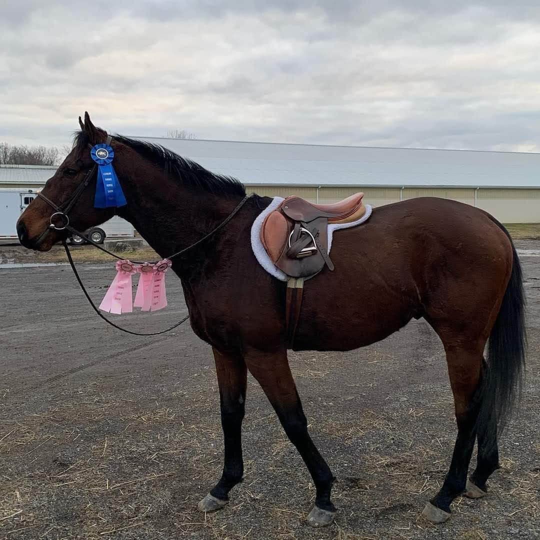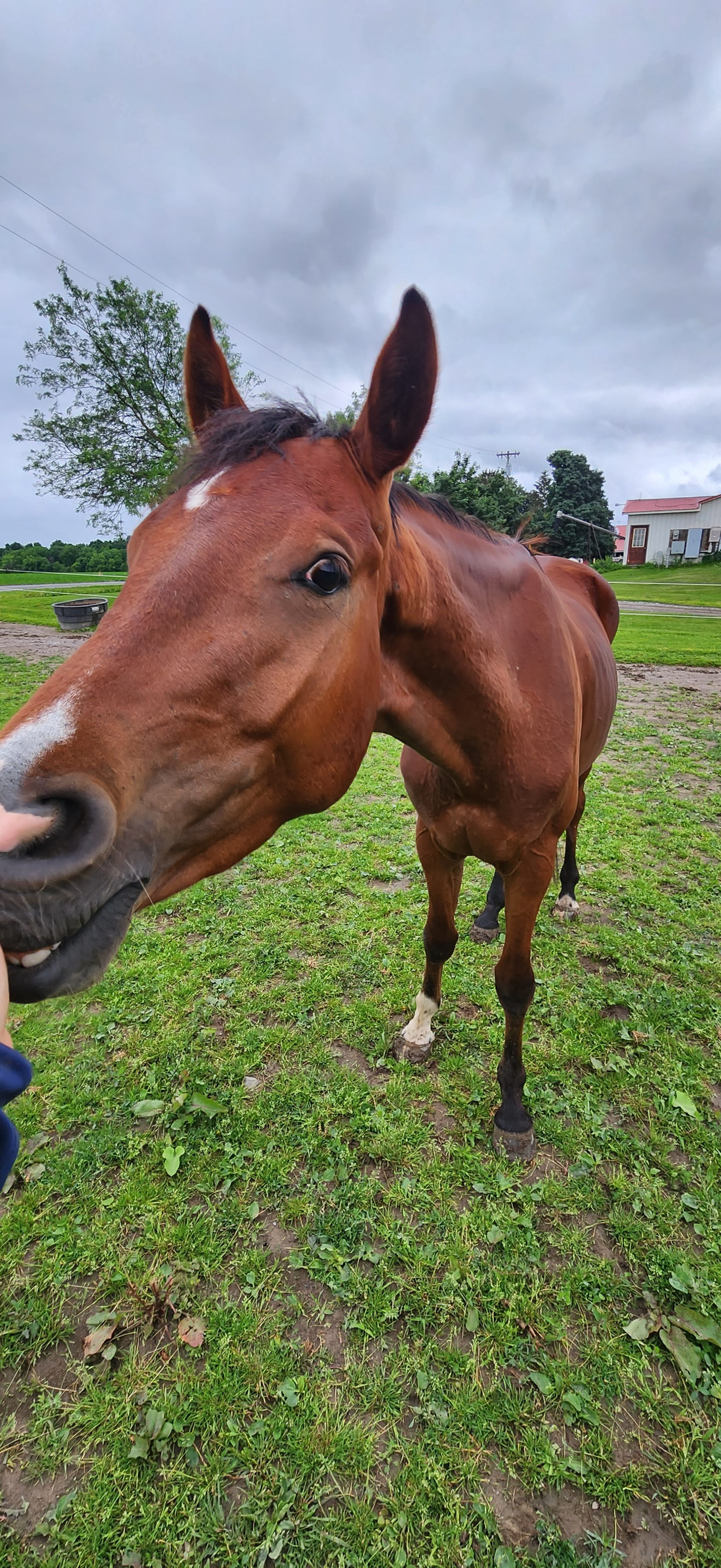 Smirk is a lovely mare who I purchased from CANTER PA/the Erie racetrack in September of 2022. She has had 3 starts in her short life and was too slow to continue to race.